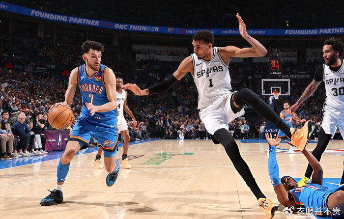 北京时间1月14日,NBA常规赛继续进行。在今天一场西部顶级对决中,雷霆队在主场119-98击败马刺队,避免了被对手四杀,战绩变成34胜7负!